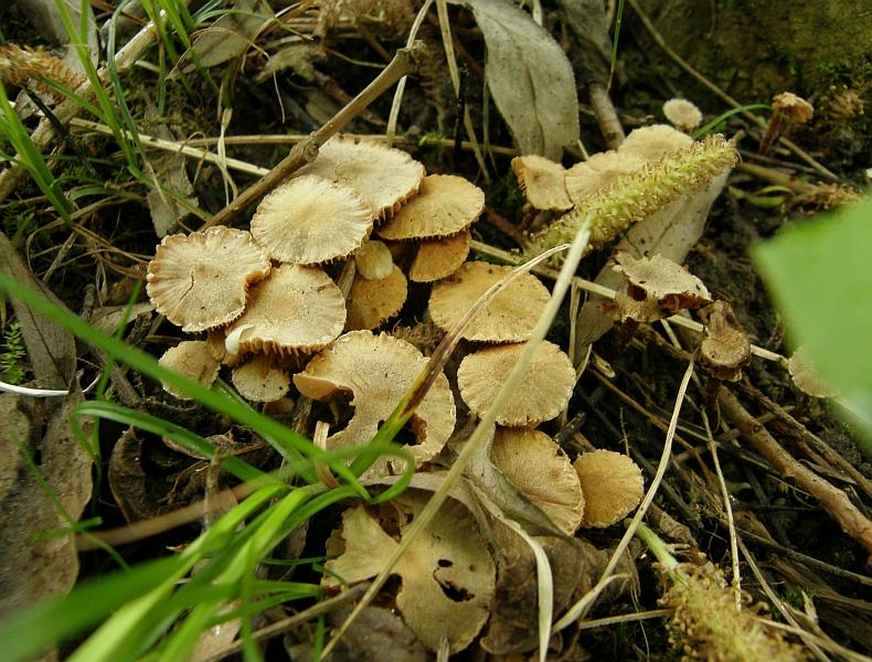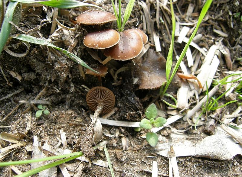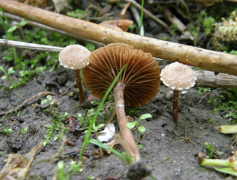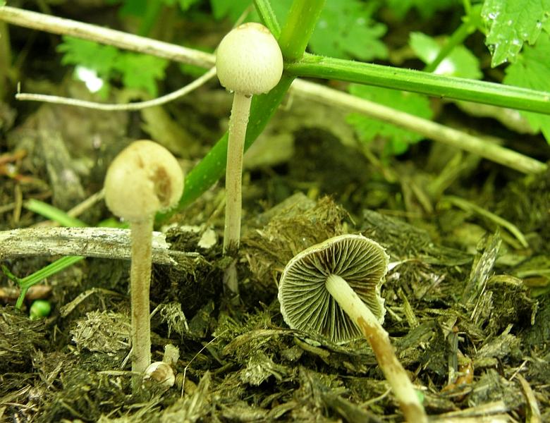 Die Spitzmorcheln im Rindenmulch an Pablo's Altenheim wurden ja schon genügend gewürdigt, genauso wie die voreilenden Ackerlinge. In diesem spziellen, nach Kleintierstreu duftenden Habitat wuchsen aber auch noch schöne Scheidlinge, vermutlich