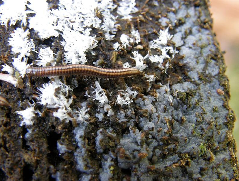 Am selben Stumpf ein lustiger Schleimpilz mit Bewohner.