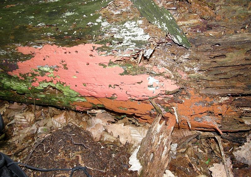 ...dem Rosafarbener Saftporling, Rhodonia placenta - für mich ein Erstfund....