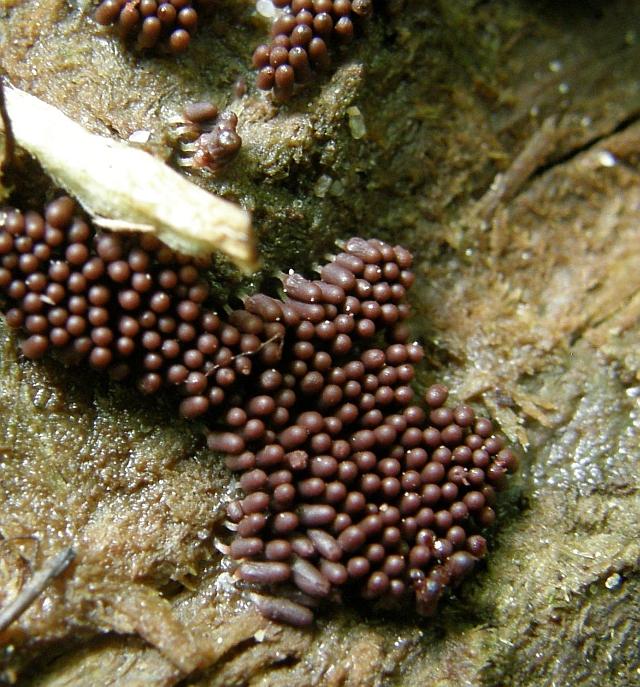 Anna hat schon einige Bilder von dem Stamm präsentiert. Ich glaube mittlerweile, daß sich da mindestens drei Arten Schleimpilze tummeln. 8|