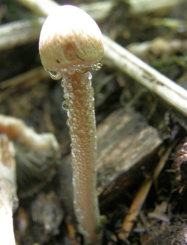 Und dann zeigen sich auch noch mit hübschen Tröpfchen am Stiel besetzte Düngerlinge ,erstere wären z.B. typisch für den langstieligen/rotbraunen Düngerling, Panaeolus acuminatus/ rickenii