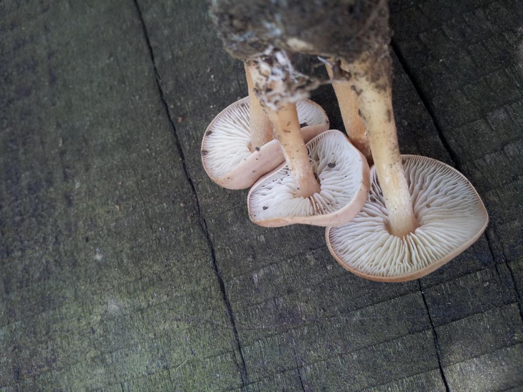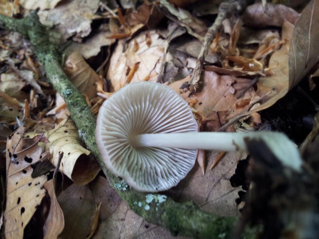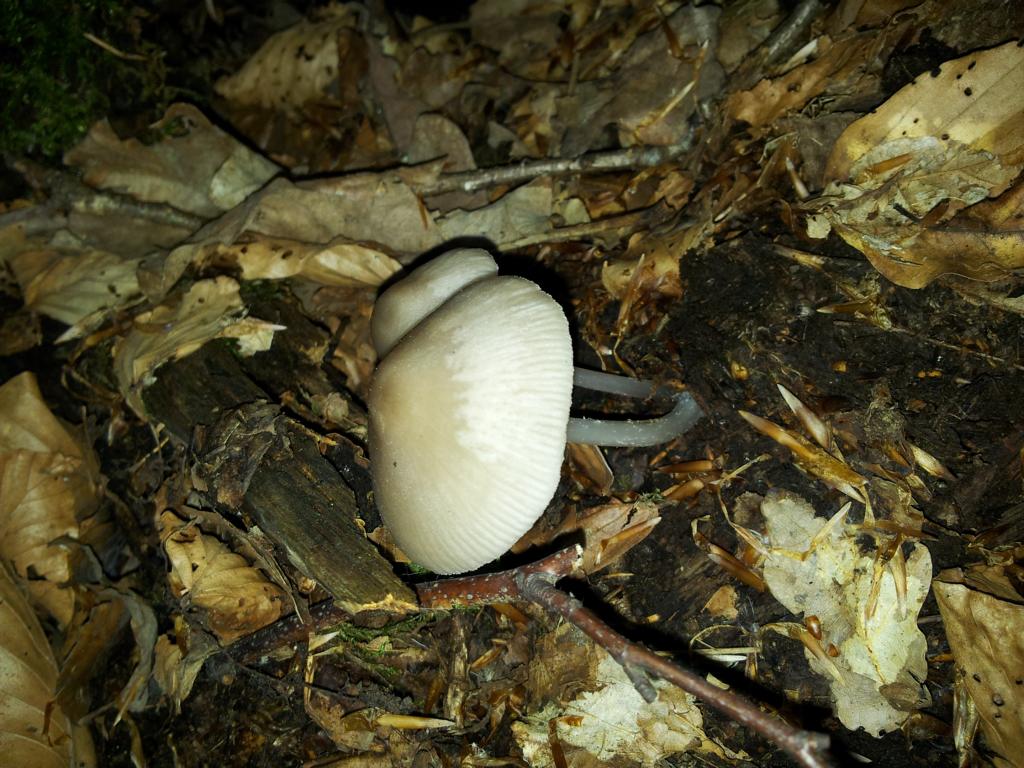 Etwa 8-10 cm groß, gefunden im Laubwald, Geruch unaufällig, bei Druck oder Schnitt keine Farbveränderung. Hatte an den Grauweißen Faserling (Psathyrella Marcesbilis) gedacht