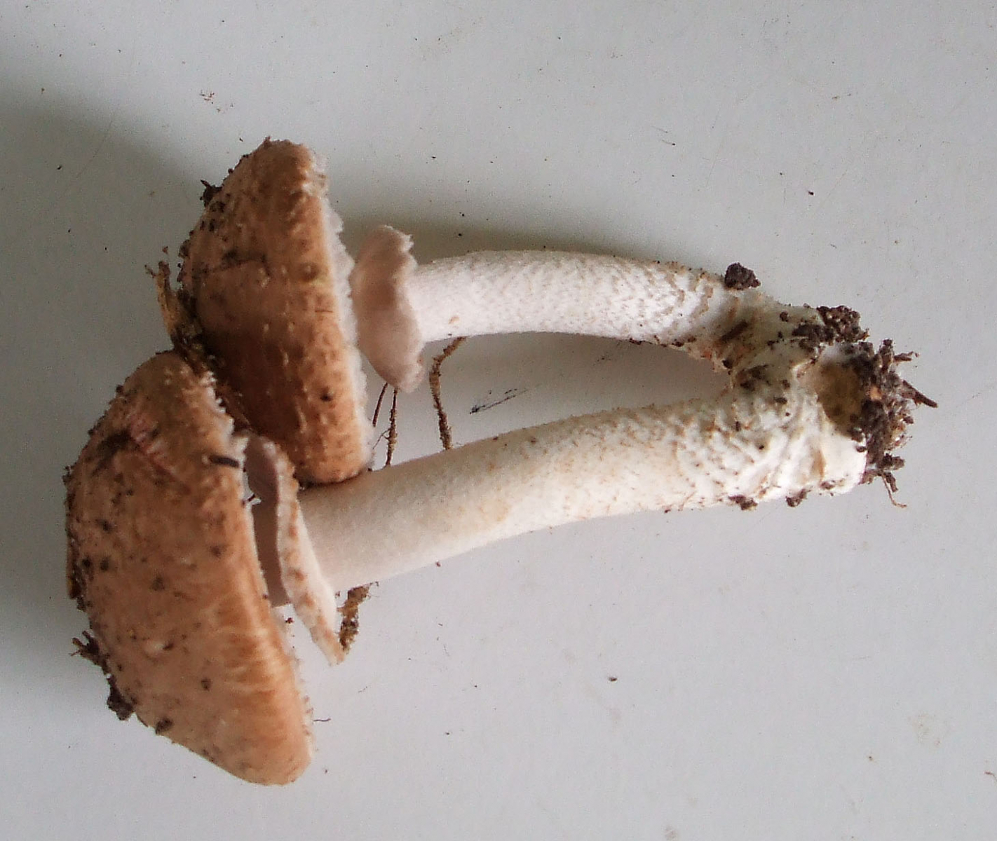 • pfefferling: Du dürftest wohl recht haben mit A. langei. Rötendes Fleisch, jung schuppig-flockiger Stiel (ist bei A. sylvaticus weniger ausgeprägt), faserig-behangener Hutrand und brauschuppiger Hut. Der Ring ist, wie ich den Bildern entnehme, wohl nach oben abziehbar. Ist dein Garten am Waldrand ? Wenn ja, paßt auch der Standort.