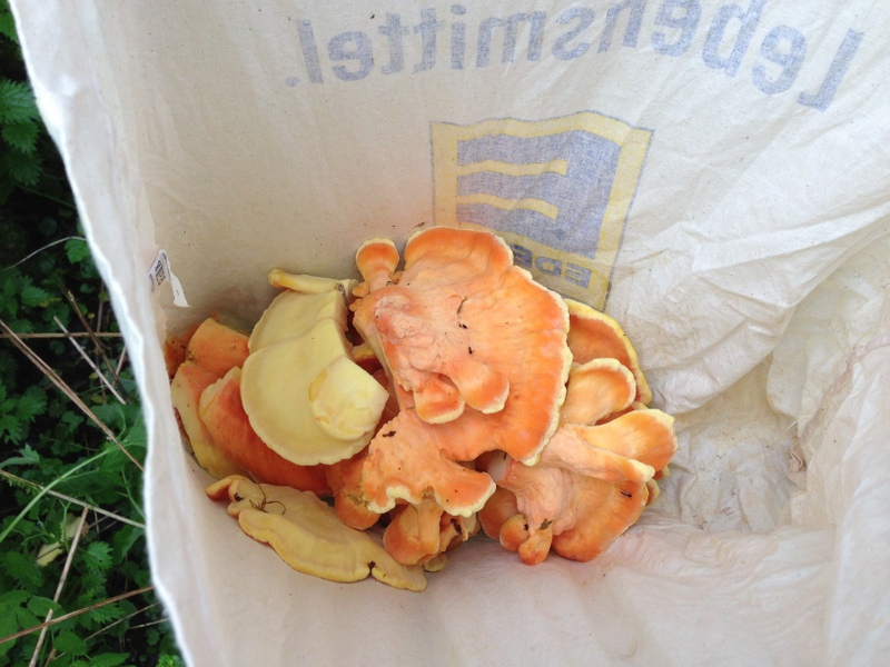 Heute gabs nicht sehr viele, dafür aber einen riesigen Stamm, der voller Schwefelporlinge war.