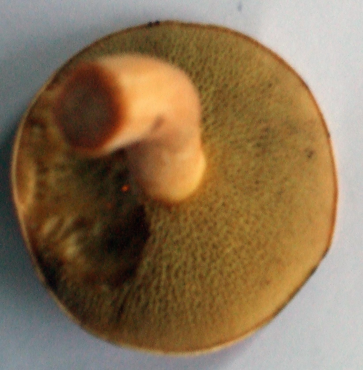 unter Lärchen fand ich kürzlich eine Menge relativ kleiner Röhrlinge mit hellbraunem Hut, festem, nur leicht bräunlichem Fleisch, sehr dünner, olivfarbener Röhrenschicht. Die Struktur der Röhren ähnelt etwas der des Kuh-Röhrling (Suillus bovinus), ist aber deutlich feiner.