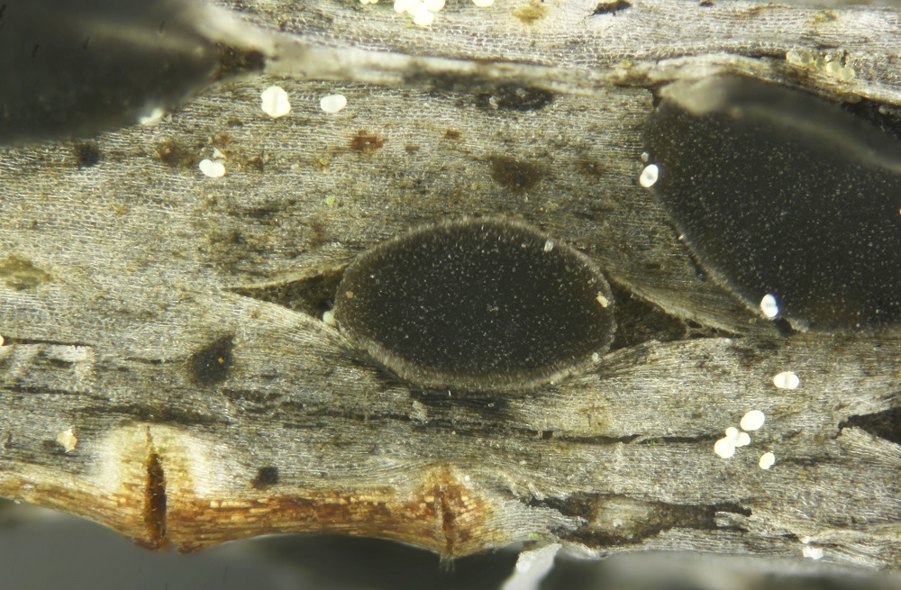 Pyrenopeziza petiolaris (Blattstiel-Einsenkbecherchen).
