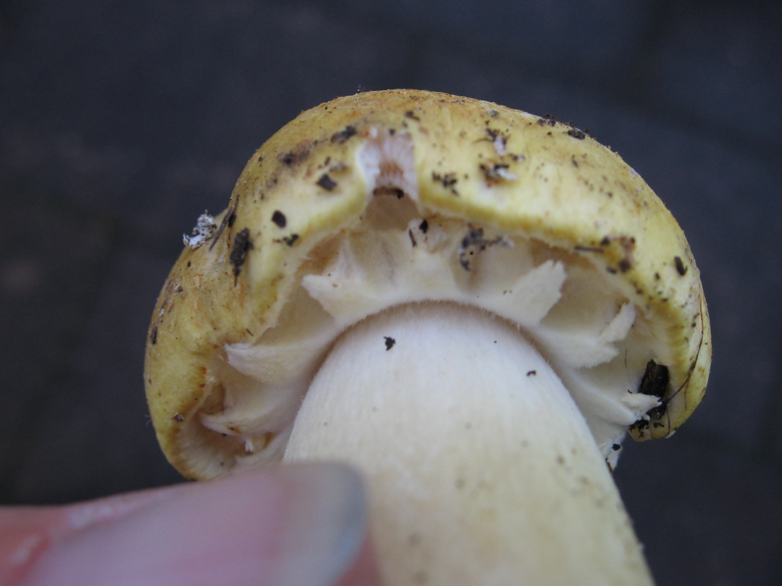 Schade, daß die so jung sind. Da hätte man mal schön dran rumbestimmen können. Ich denke, Merlin hat mit der Richtung ganz recht. Allerdings solltest du bei A. arvensis schon einen deutlichen Geruch, eben nach Anis / Bittermandel / Marzipan wahrnehmen. Jedenfalls nicht "nach Champignon". Die gelbe Hutoberfläche und der kräftige Wuchs würde aber passen.
