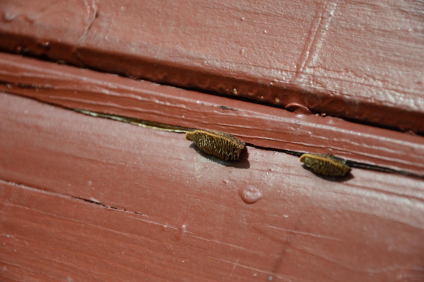 diese kleinen Pilze befinden sich an unserer Gartenhütte (Fund: 31.05.2013, wahrscheinlich sind sie aber schon ein paar Tage da gewesen.) Falls das weiterhilft: auf Druck geben sie nicht nach und sie sind recht rau (was man wahrscheinlich schon auf dem Foto erkennt.)
