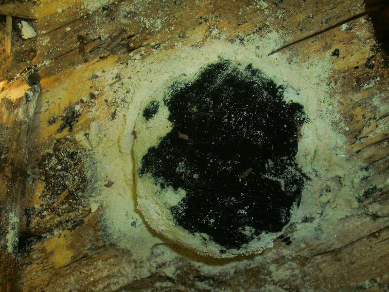 Das war eine flachere schwärzliche bröselige runde Scheibe von 4-5 cm Durchmesser, ca. 1-2 cm Dicke , die auf einem entrindeten Holzstück aufsaß.