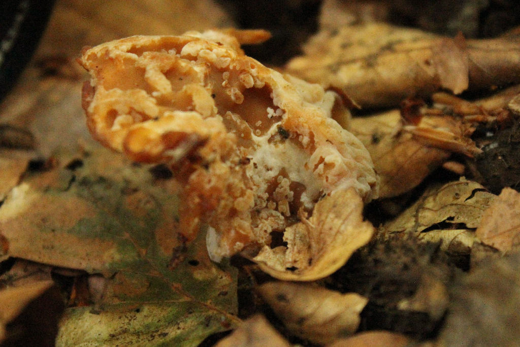 Er erinnert uns in bestimmten Aspekten in Habitus und Oberflächenstruktur irgendwie an die Morchel- und Lorchelverwandschaft (aderiger Morchelbecherling ect.), einer spezifischen Art konnten wir ihn aber nicht zuordnen und stehen da irgendwie auf dem Schlauch. ![]()