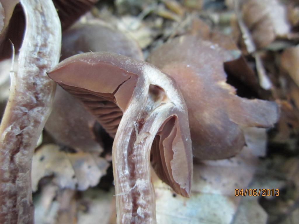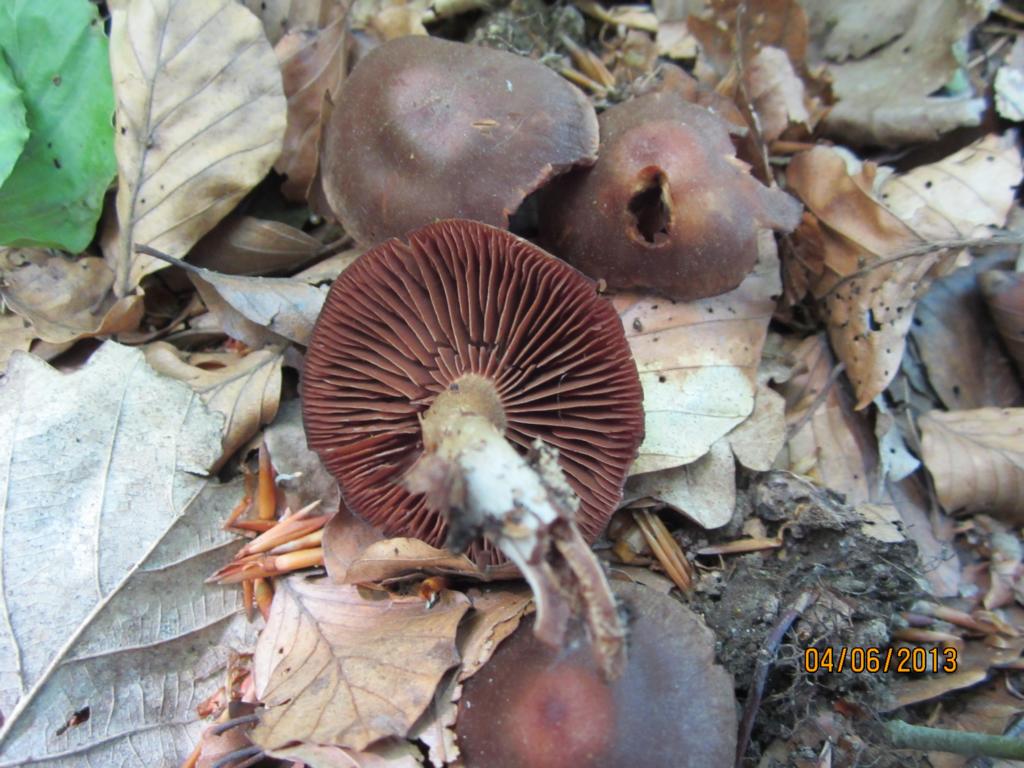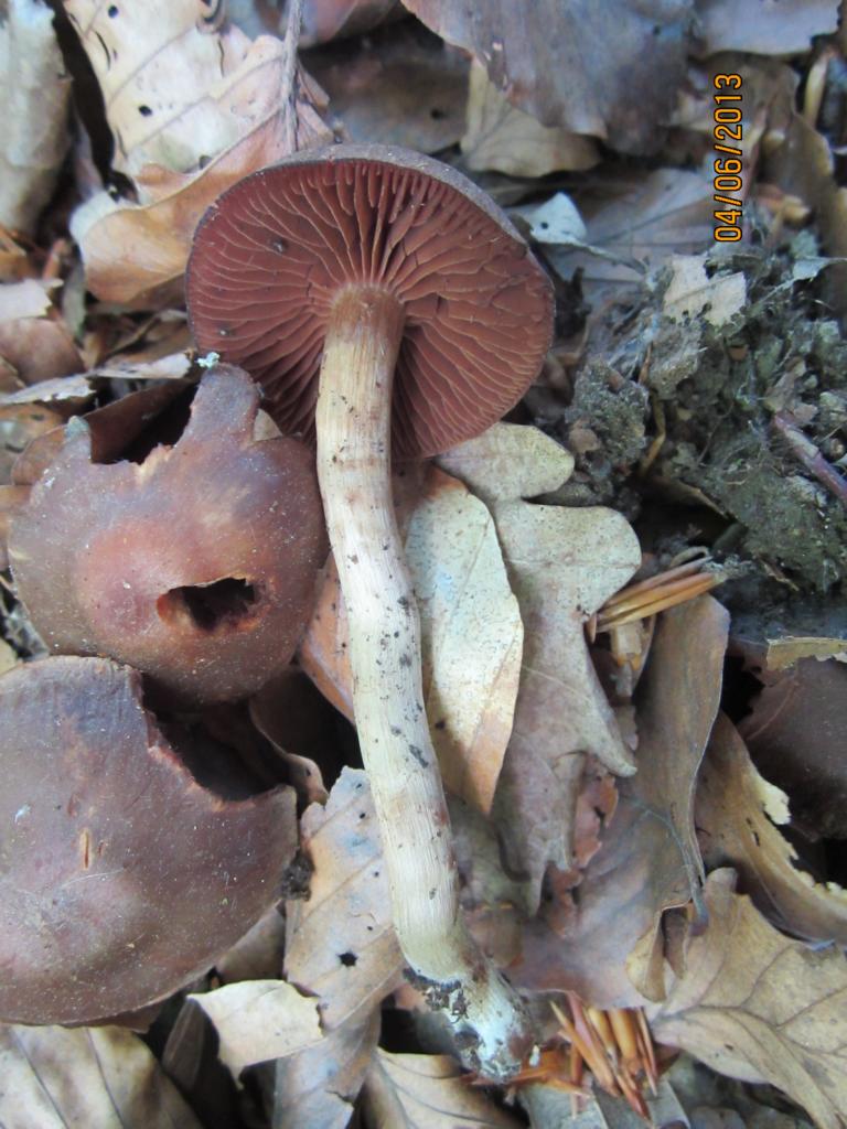 Geruch irgendwie unangenehm, etwas mehlartig würde ich sagen, etwa 7-9 cm groß... Habe natürlich auf den ersten Blick sofort an Cortinarius sanguineus gedacht, aber da würde ja irgendwie einiges wie die Farbe des Stiels z.B. nicht passen... Jemand weitere Vorschläge?