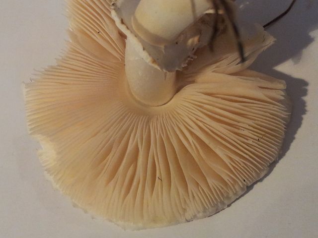 Der Pilz wirkt auf den Bildern etwas dunkler, Lamellen wirklich eher reinweiß.