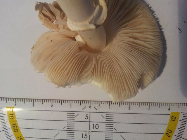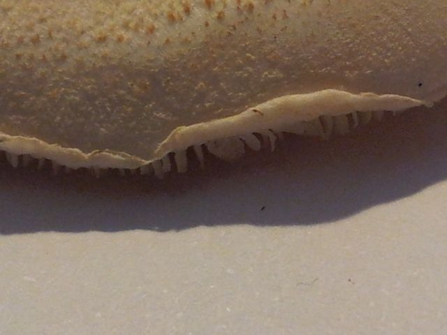 Der Pilz wirkt auf den Bildern etwas dunkler, Lamellen wirklich eher reinweiß.