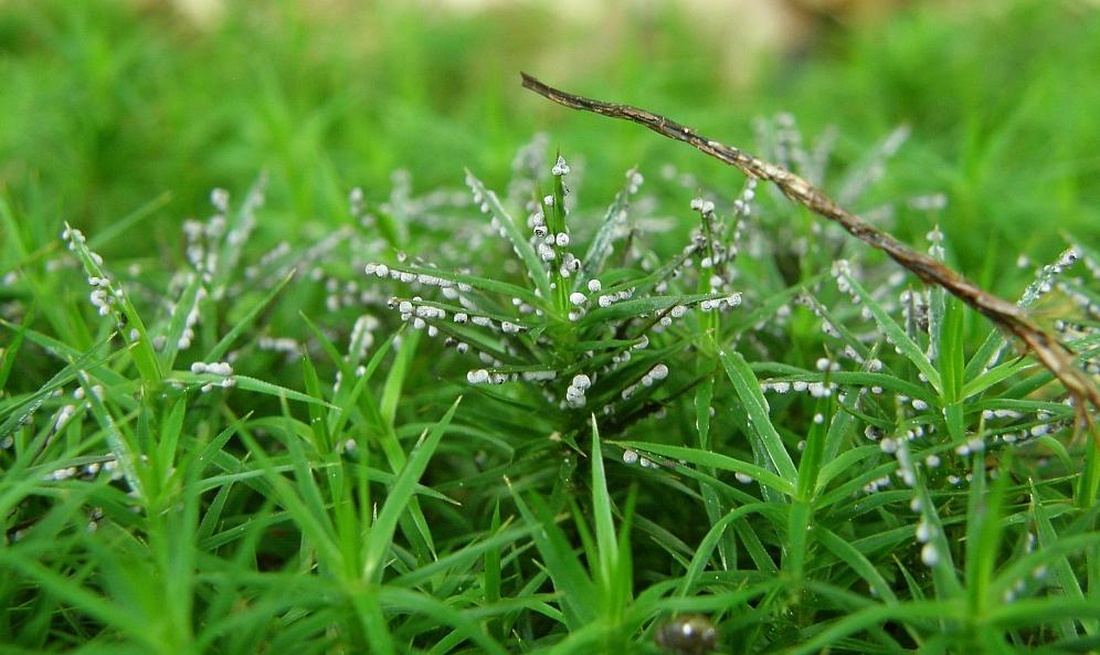 Anscheinend macht es sogar etwas mit der Wachstumsprogrammierung der Moospflänzchen, weil die befallenen teils Triebe auffallend hoch aufgeschossen waren. Als würde der Pilz der Pflanze befehlen, besonders hoch zu wachsen, um eine bessere Absprungbasis für die Sporen zu schaffen: