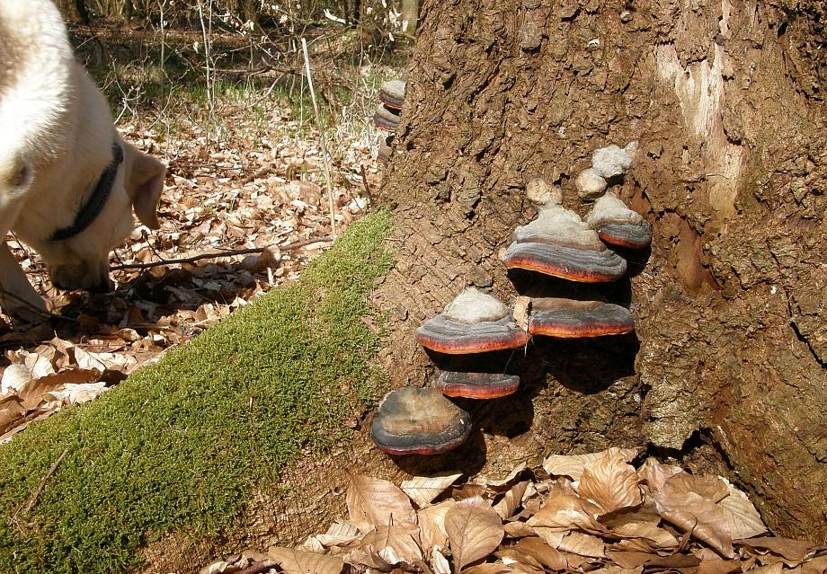 Wissenswertes: Wie viele mehrjährige Porlinge kann auch der Rotrandige Baumschwamm auf eine Lageveränderung des Substrats reagieren. Wenn zB ein bewachsener Baumstamm umstürzt, verschließt der Fruchtkörper die nun verkehrtherum liegenden Poren und bildet neue Hüte mit nach unten weisender Porenschicht aus den alten Fruchtkörpern. Dabei kommen bisweilen interessante Wuchsformen zustande.