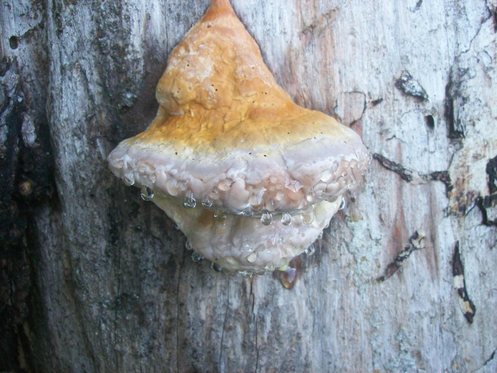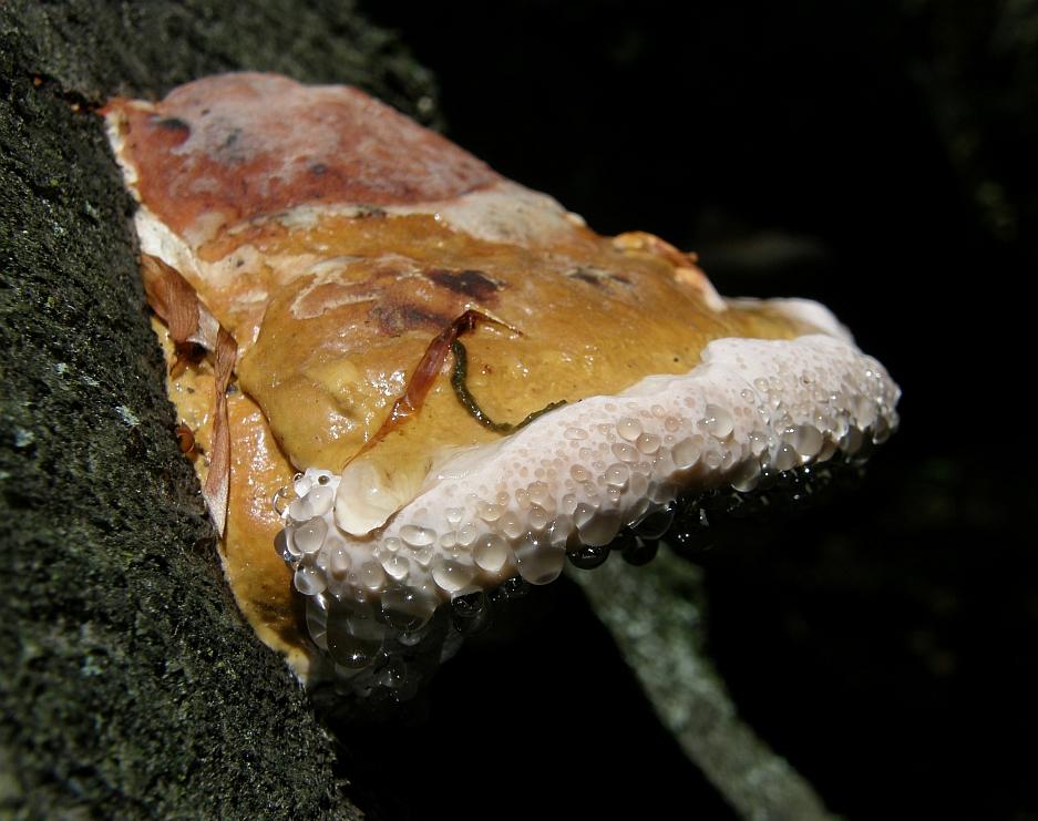 Ähnlich jung an der Schnittkante von Tannentotholz, die Guttationstropfen waren eingetrocknet.