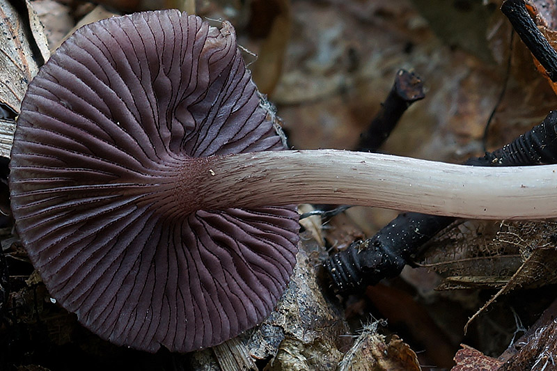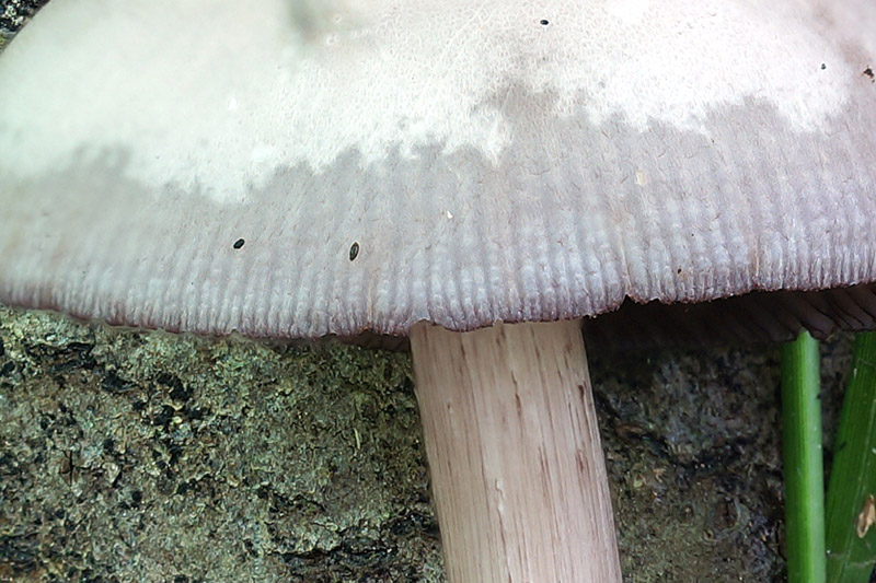 ..., dass das der Schwarzschneidige Rettichhelmling (Mycena pelianthina) ist. Der hat mich nämlich auch neulich genarrt, weil er trotz seiner Eigenschaft als Helmling und im Gegensatz zu den anderen Rettichhelmlingen einfach keine hellen Lamellen hat. So einer.
