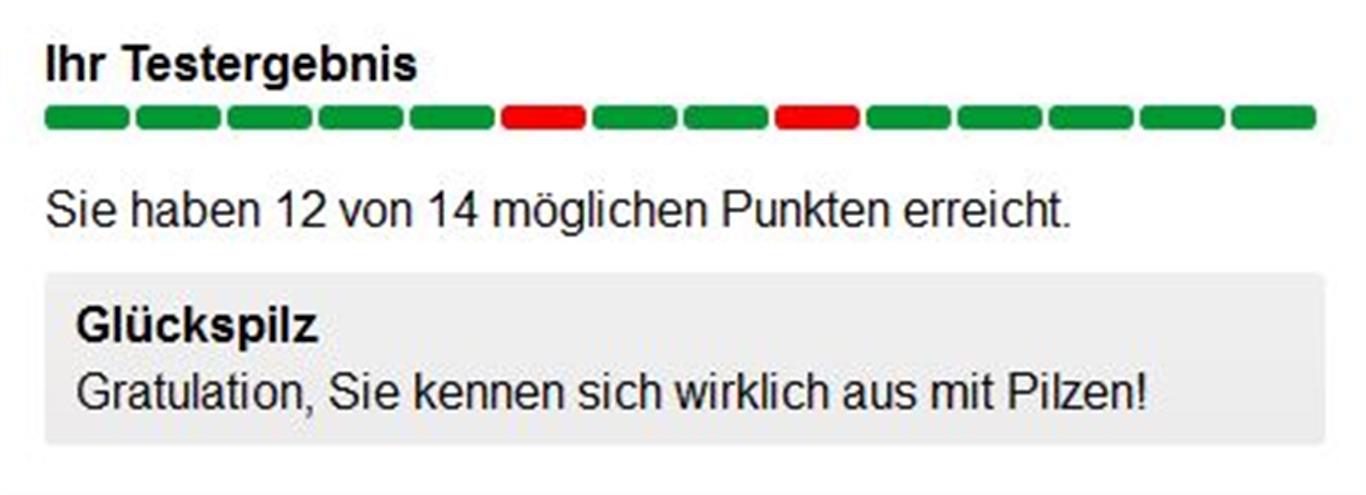 11 von 14 Punkten und es heisst: Gratulation, Sie kennen sich wirklich aus mit Pilzen!