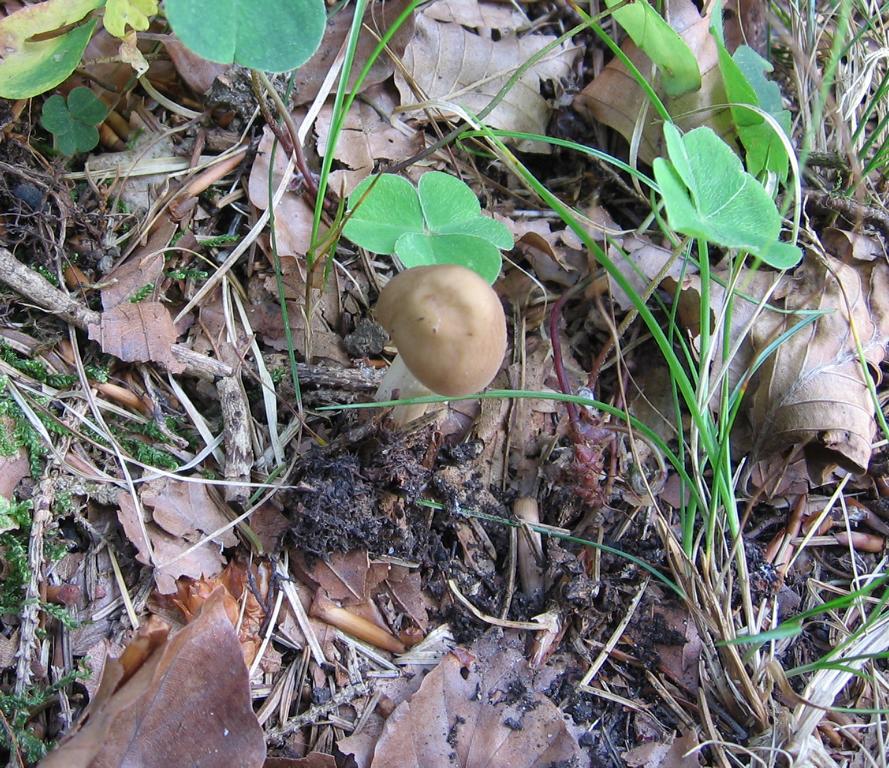 Stiel: 8-10cm, unter den Lamellen hell und etwas dicker, nach unten konisch wieder dicker werdend und etwas bräunlich, ohne Ring, weissem Mycel, und "Wurzel". In sich stabil, längsfaserig.