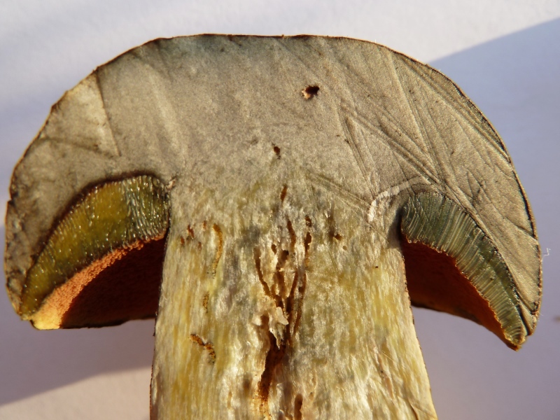 Xebolon: ich finde schon, dass man im oberen Drittel des Stiels ein Netz erkennen kann. Auch der Rest (Roter Röhrenboden, starker Madenbefall im Stiel sowie der helle Hut) sprechen klar für den Netzstieligen Hexenröhrling.