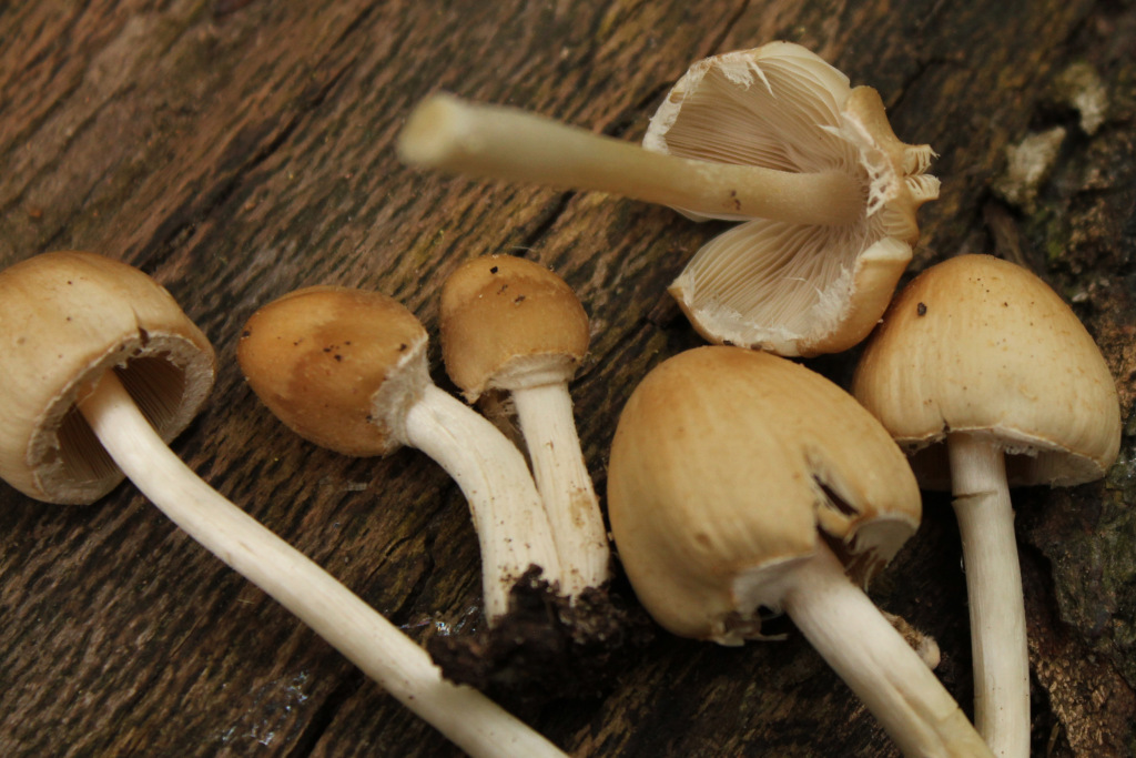 In den Bildern Nummer 20, 21 und 24 (Edit: korrigiert, zählen sollte man können ;) ) sehe ich Faserlinge (Psathyrella), vgl. hier z.B. den Behangenen Faserling (Psathyrella candolleana).