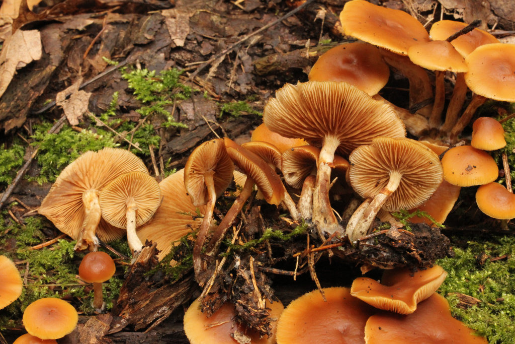 Stockschwämmchen und Gifthäubling sowie weitere Arten an einem Stubben:
