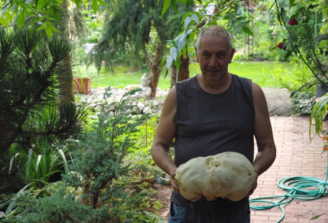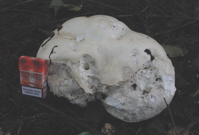 Info: Die Riesenboviste Langermannia/Calvatia gigantea können bis zu 25 kg schwer und einen Durchmesser von bis zu 60 cm erreichen! Ein solcher Fruchtkörper würde bei idealen Bedingungen ca. 10 Tage brauchen um so groß werden zu können, ausserdem produzieren die Riesenboviste bis zu 6 Billionen Sporen.