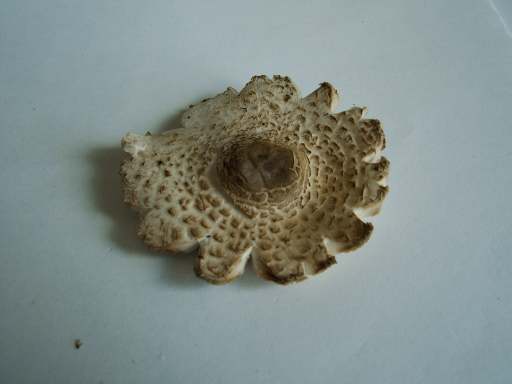 - Aufgrund der hellen, breiten, freien (nicht am Stiel angewachsenen) Lamellen, der Größe des sehr dünnfleischigen Hutes spekuliere ich wie Andreas auch auf eine Schirmlingsart (Gattung Lepiota) , wobei ich aber auch eine früher bei den Faltentintlingen (Gattung Leucocoprinus) geführte Art (neuerdings bei den Egerlingsschirmpilzen (Leucoagaricus) untergebracht) nicht völlig ausschließe.