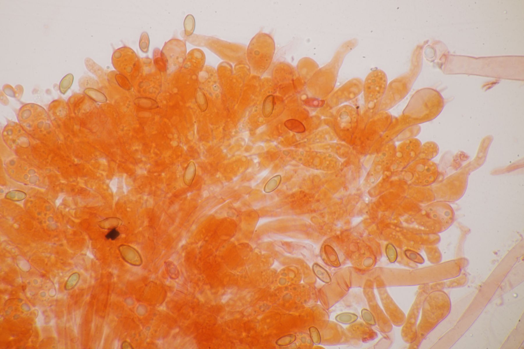 auch wenn der Pilz ja seit der Erstellung des Portraits seinen Namen in Hortiboletus rubellus geändert hat, steuere ich mal Bilder von einer mikroskopierten Kollektion bei, die ich gestern auf dem Alten Friedhof in Duisburg gemacht habe.