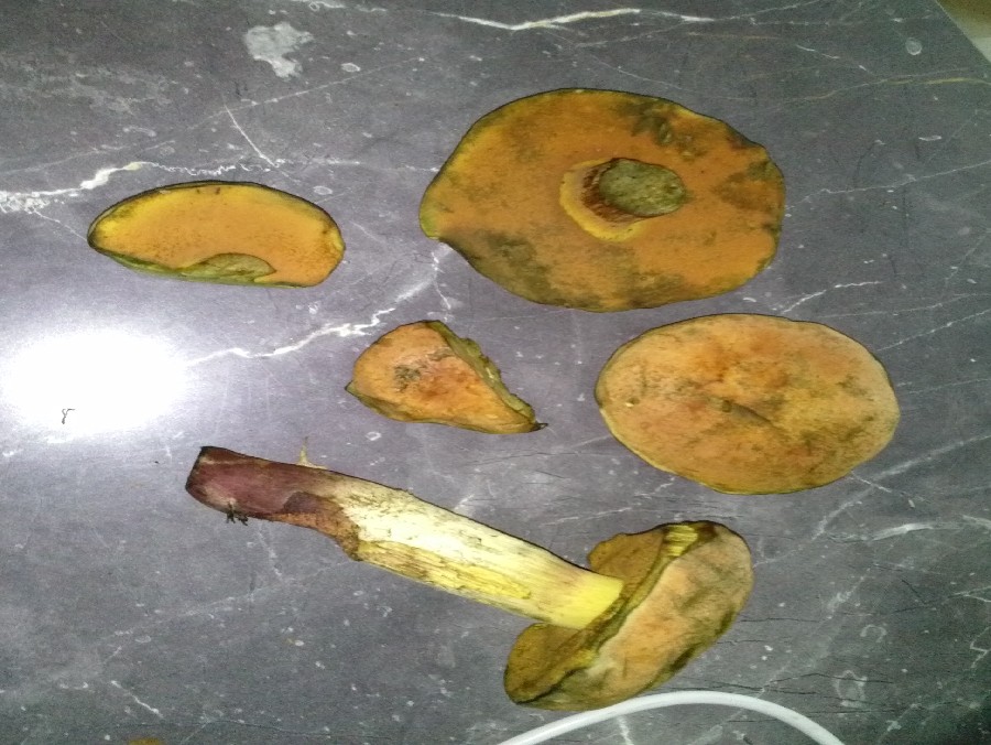 Gestern morgen war ich in einem Wald südlich von Stuttgart Pilze suchen. Eigentlichwollte ich Pfifferlinge ernten, die fand ich aber kaum. Stattdessen habe ich gestern ca. 200 bis 300 Sommer-Steinpilze gefunden. Soweit das Positive. Bevor jetzt alle in den Wald rennen komm hier das Negative. Ich war 3-4 Tage zu spät. 80 % aller Steinis waren schon über Verfallsdatum. Ich hab mein Körbchen trotzdem voll bekommen. Stiele waren ALLE madig.