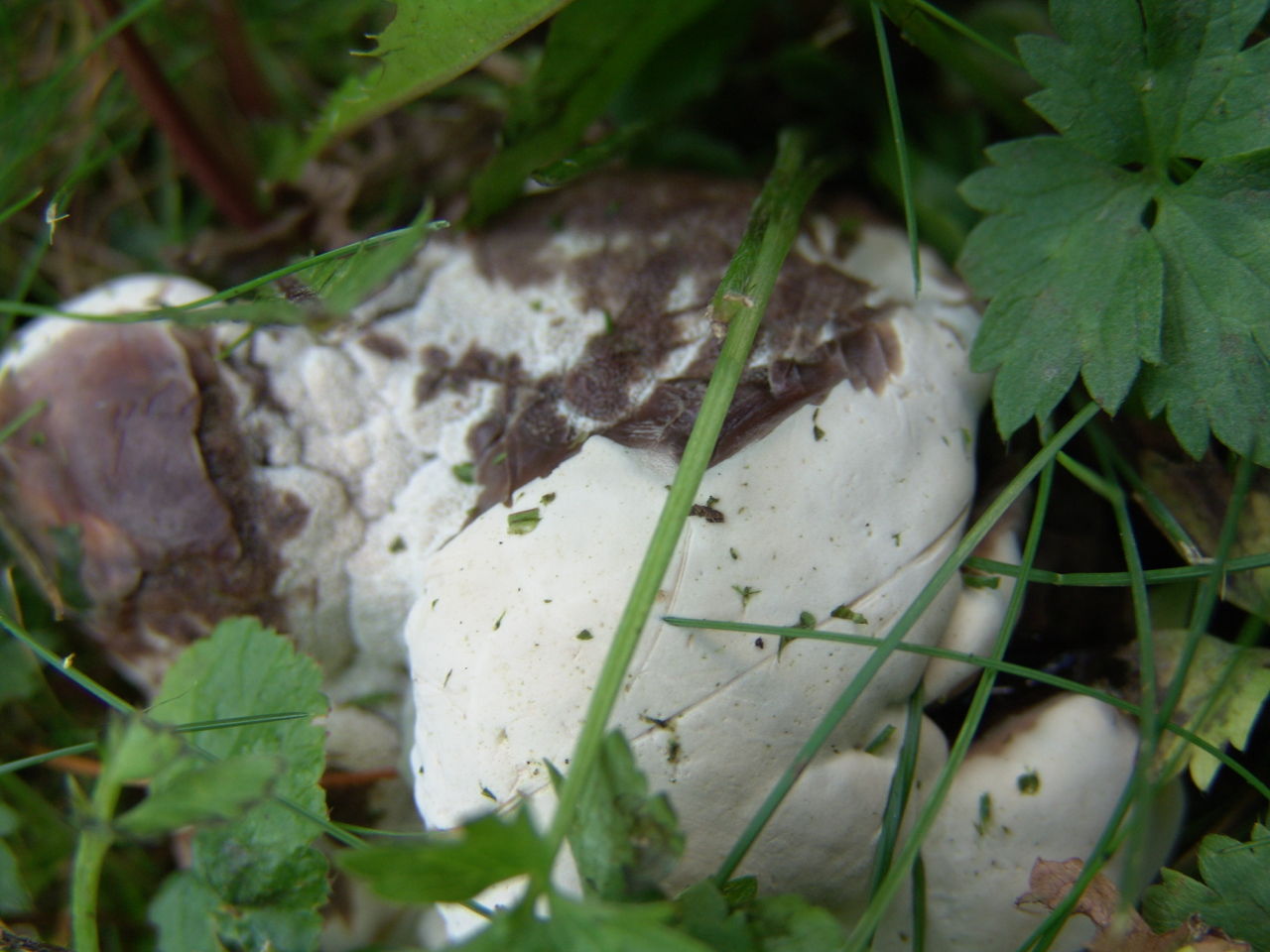 anbei Fotos v der Pilzgruppe, direkt nach dem Rasenmähen: daher sieht man auch wie der Pilz "angeschnitten" aussieht: nämlich innen braun (außen eher weiß).