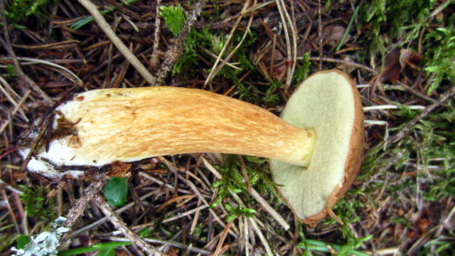 Genau so wie der Maronen-Röhrling (Xerocomus Badius):