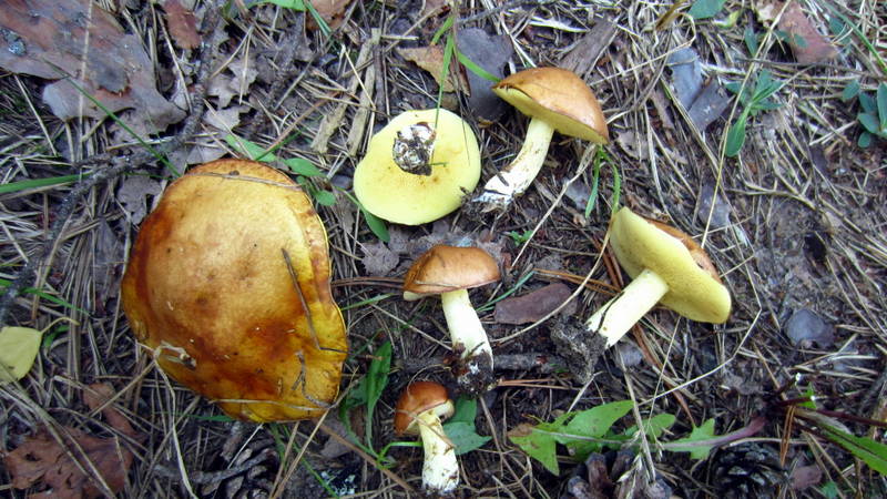 Körnchen-Röhrlinge oder Schmerlinge (Suillus granulatus) hatten wir ebenfalls zu Hauf gefunden.