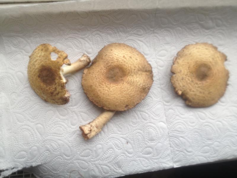 Ich habe in der Vergangenheit schon oft Parasols und Safranschirmlinge gesammelt, jedoch war bei denen der Hut nicht so bräunlich, sie waren auch insgesamt größer.