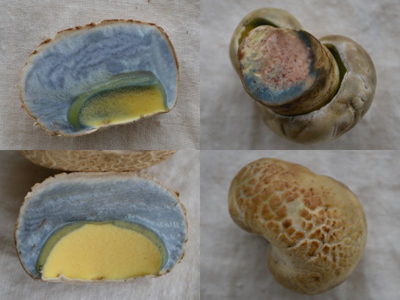 Würde einfach so "in Blaue" auf einen Kornblumenröhrling (Gyroporus cyanescens) tippen.