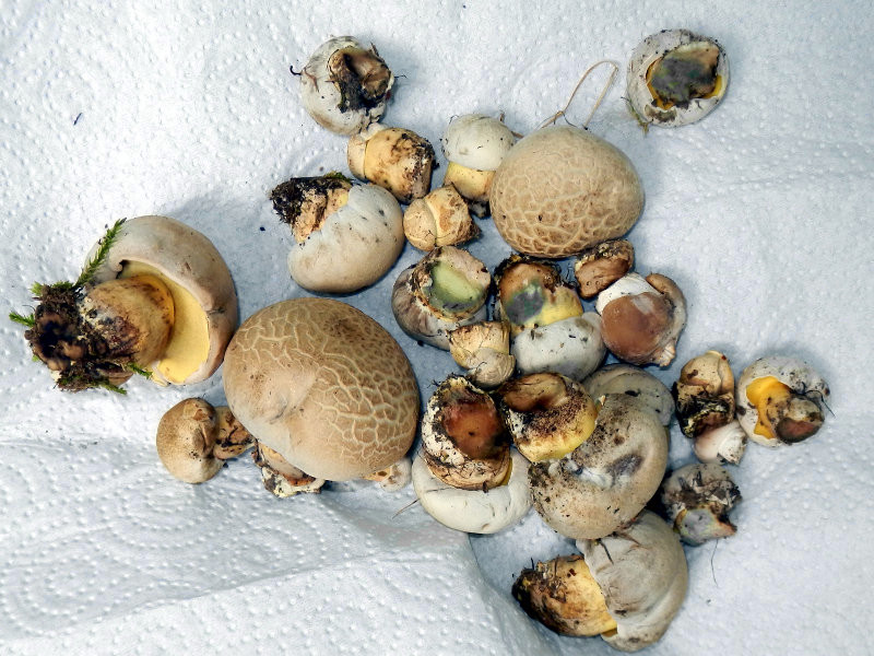 Manche Exemplare waren auch rot im Anschnitt des Stils wenn schon viele Mitesser hindurchgekrochen waren.