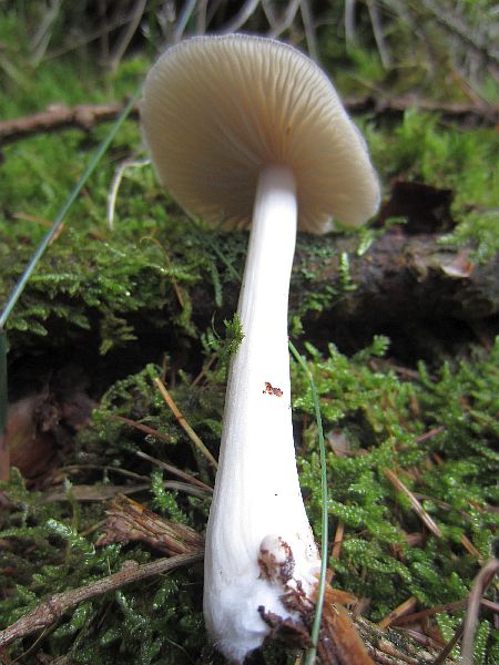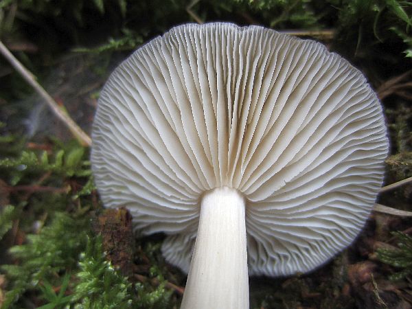 Hier bitte ich um Eure Meinungen, da der Pilz mir unbekannt. Wuchs am Wegrand zur Fichtenschonung und stand gaaaaanz alleine. Größe Hut ca. 5cm. Farbe Grau: