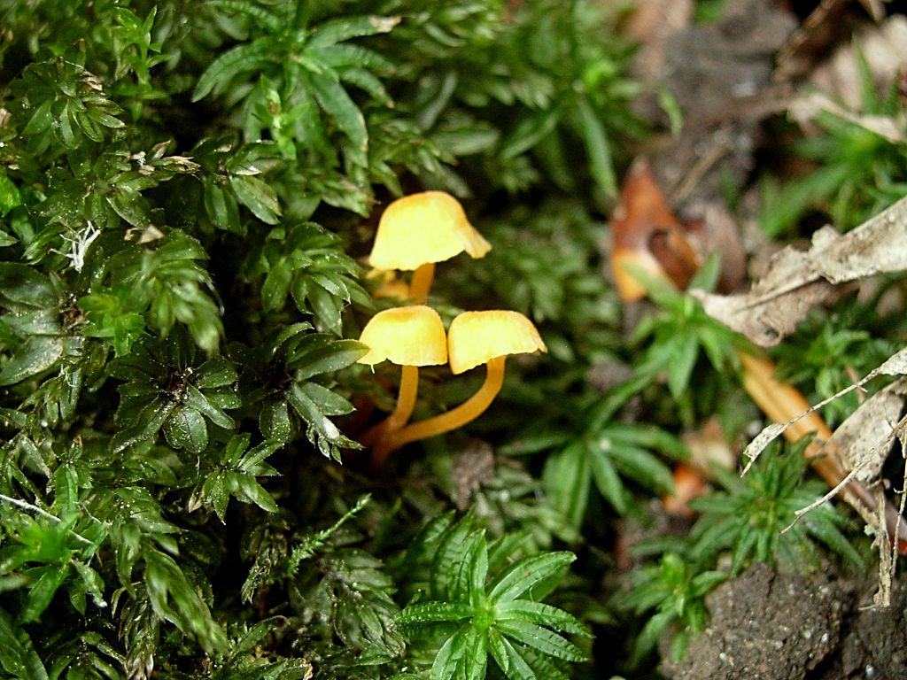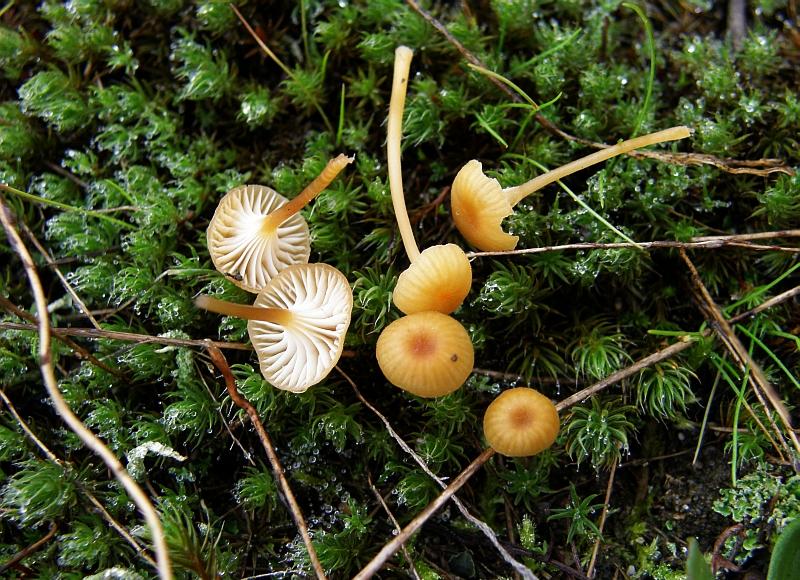 Hut: Klein nicht mehr als 1 cm, halbkugelig mit orange/rote leicht hygrophane Färbung, die mitte ist dunkler und genabelt, der rand ist wellig und kann schon mal gerieft erscheinen, im alter kann der Hut schon mal abgeflacht sein und der Rand kann sich auch nach oben biegen.