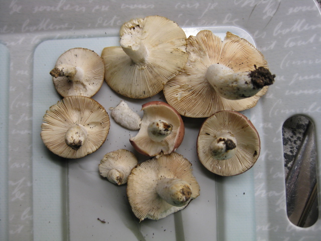 Bild 1 Mitte die beiden rechts tanzen aus der Reihe sind m. E. Russula vesca übrigens hahlte ich alle anderen ebenfalls für Russula spec. ( könntest Du zu denen noch Angaben nachreichen ? )