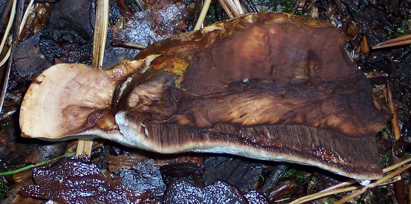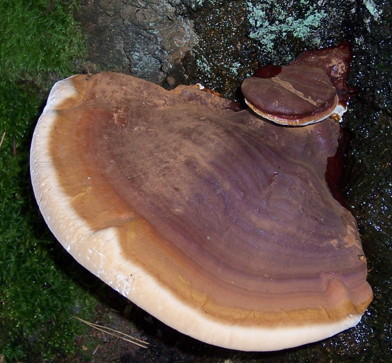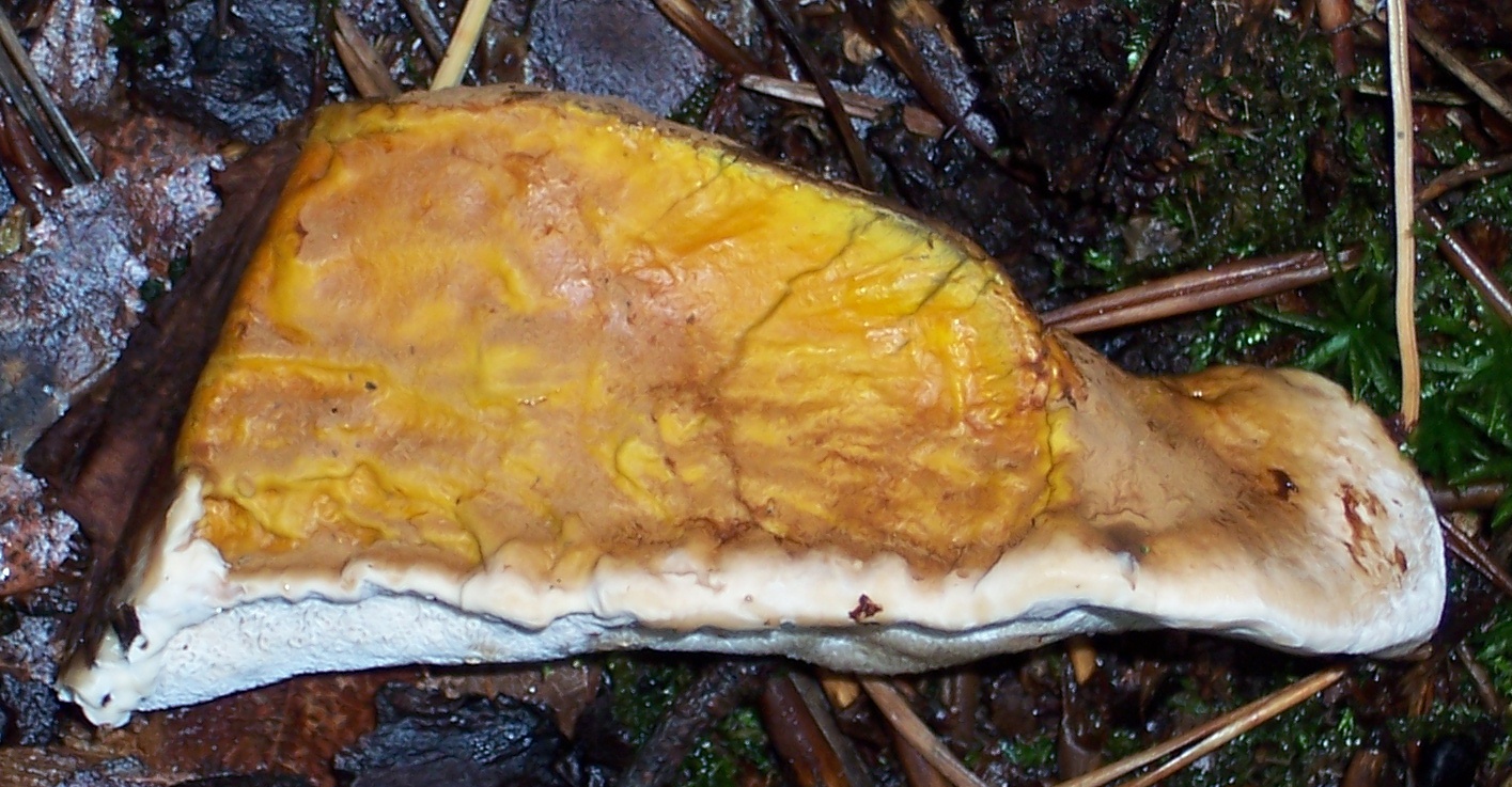diesen Porling fand ich vor ein paar Tagen an einer lebenden Rotbuche, die mit der Rinde in direktem Kontakt zu einer ebenfalls noch lebenden Kiefer stand, die bis in die 50er Jahre zur Harzgewinnung angezapft worden war. Das größere Pilz-Exemplar hat eine Hutbreite von ca 15 cm. Der Pilz wächst ca einen halben Meter über dem Erdboden.