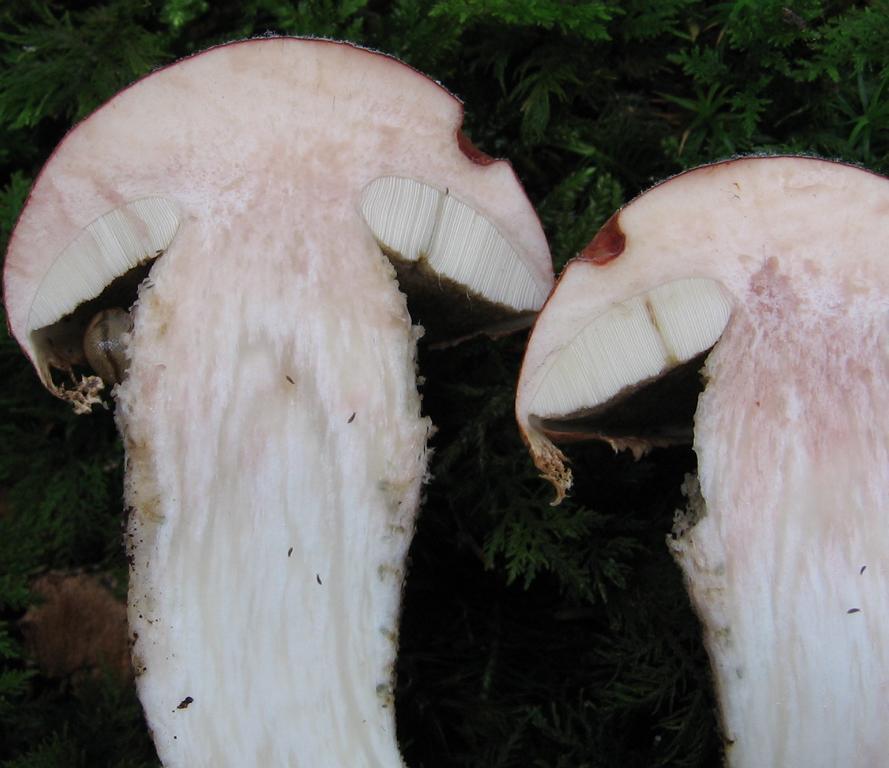 Wie viel Zeit ist denn bei dir zwischen dem Aufschneiden der Fruchtkörper und dem Bildmachen vergangen? Und falls nur zwei oder drei MInuten: Wie hat sich die Farbe denn nach so etwa 10 bis 15 Minuten entwickelt?