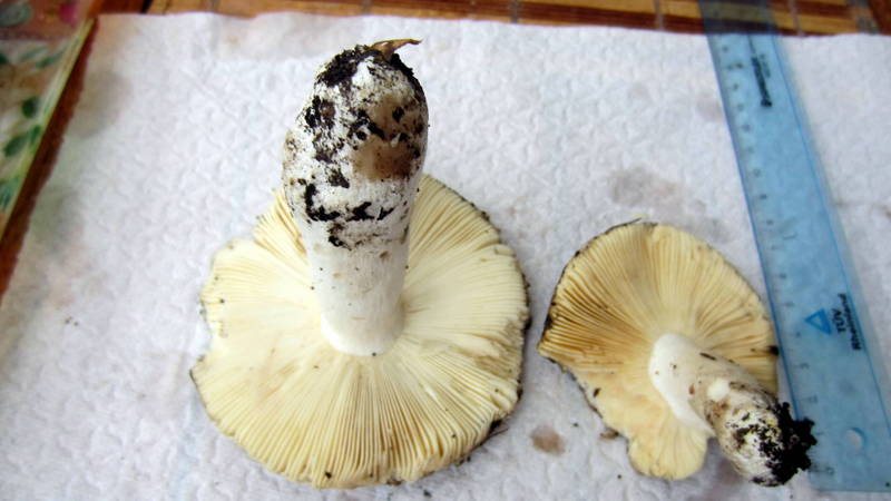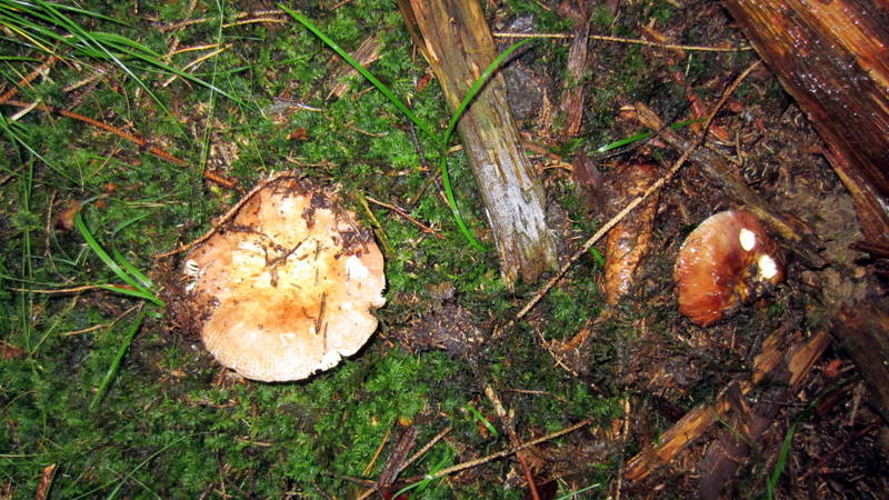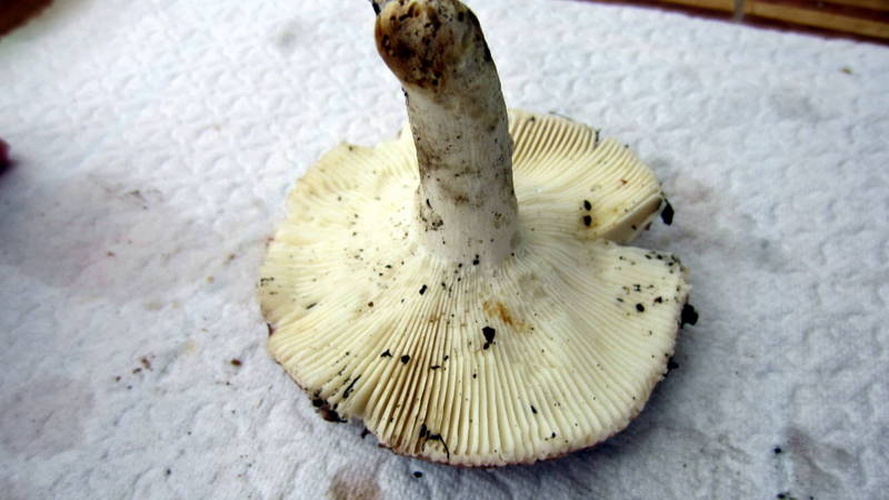 Ganz in der Nähe wuchs dieser älterer Täubling (vermutlich das gleiche wie 5.1 bus 5.3), der in der letzten Nacht creme- bis ockerfarbige Sporen abgeworfen hat:
