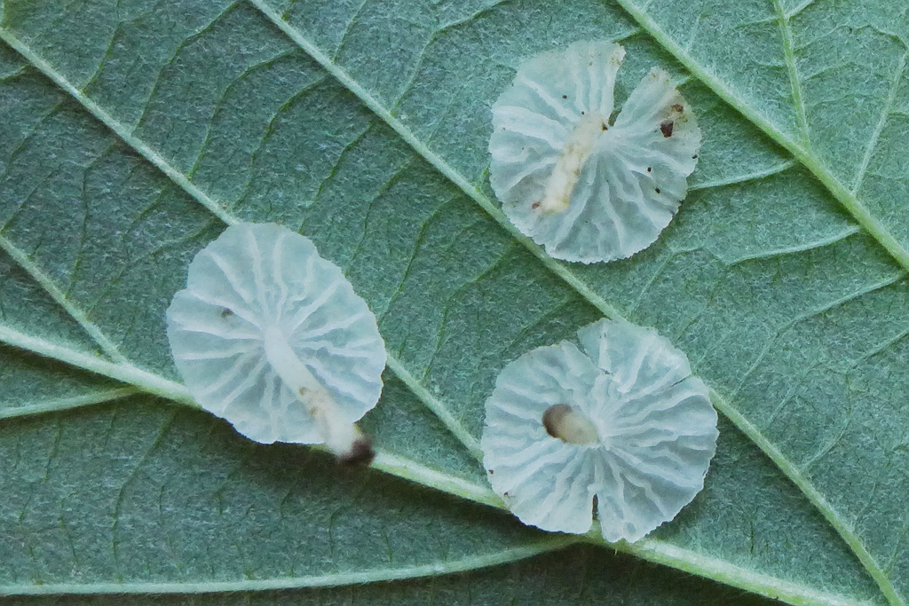 Lamellen: weiss, entfernt stehend, aderig und teilweise gegabelt.