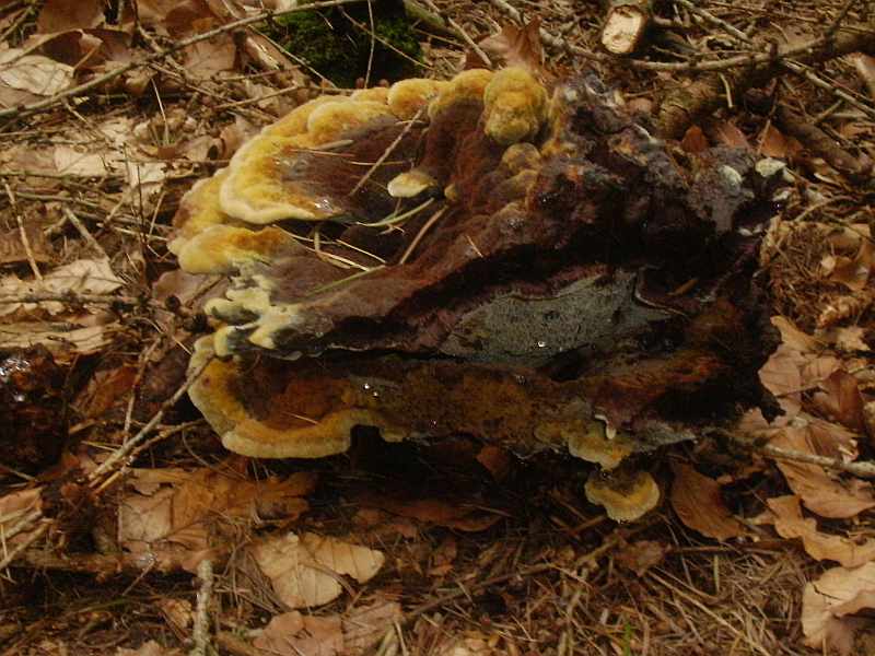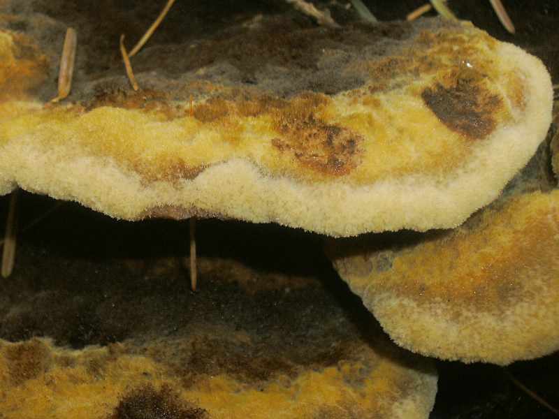 Da erst habe ich ihn im Buch erkannt: den Kiefern-Braunporling bzw. Nadelholz-Braunporling (Phaeolus schweinitzii , Syn. P. spadiceus) - das ist doch richtig?