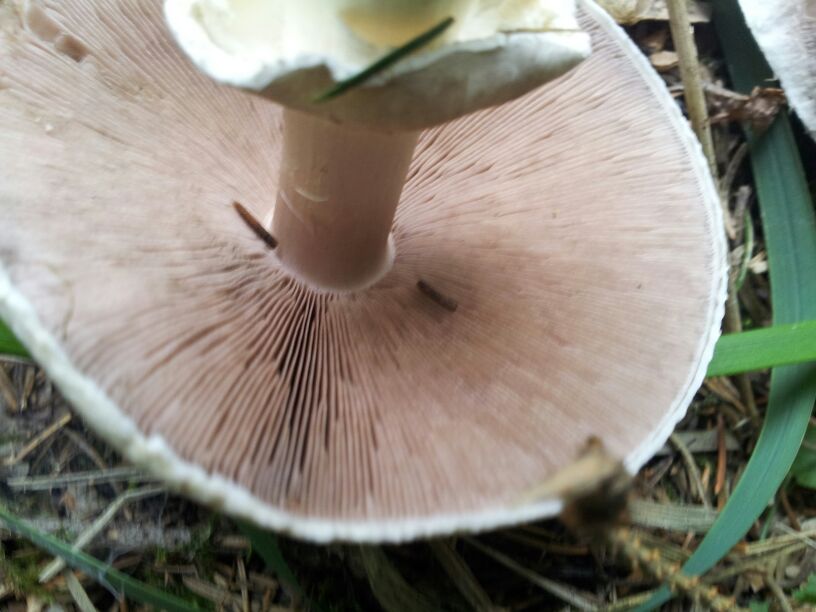 Jetzt noch ein paar Champis, da bin ich völlig Planlos. Finde einfach nichts , was wirklich passt, vielleicht habe ich aber auch Tomaten vor den Augen. Gefunden habe ich zwei Exemplare an der Grenze von Nadel- und Laubwald, da stand also so gut wie alles. Der Geruch war ziemlich angenehm, fast wie die gezüchteten ausm Supermarkt. Beim Ärgern gab es keine drastischen Verfärbungen, im Schnitt genauso wenig, außer an Fraßstellen, der Stiel war innen etwas hohl und wattig.