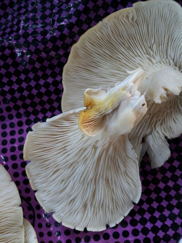 Im Wald war ich mir sicher, ich hab meine ersten Lungenseitlinge gefunden. Geruch und Geschmack mild, aber kein Anis. Doch als ich zuhause ankam, sah ich diese gelben Verfärbungen an manchen stellen. Davon habe ich noch nie etwas gelesen. Deswegen macht er mir bisschen Bauchschmerzen, hört er eventuell auf einen anderen Namen? Klar, das ist immer so ein Ding mit den Seitlingen...Habe ihn natürlich nicht gegessen.