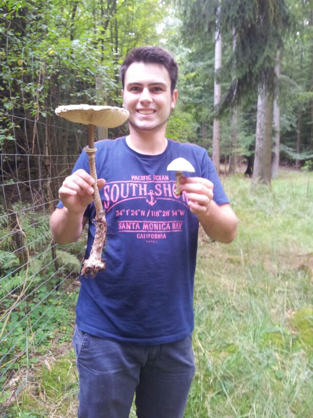 Gestern sah ich also schon 4-5 Parasole auf der Strecke und heute hat er sich dann begnadigt etwas langsamer zu fahren. Also hab ich Pilz gerufen, er legte eine Vollbremsung hin, ich sprang aus dem Auto, pflückte den Pilz und es ging weiter (Garnicht so ungefährlich in nem kurvigen Wald einfach stehen zu bleiben, wo die meisten mit 100 lang hacken :D) Okay, am Feierabend hatte ich dann zwei schöne Parasole, der Rest war zu alt.