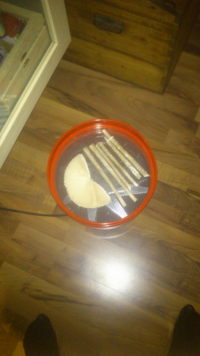 Und auf den Dörrex kam auch bisschen, daraus wird dann Pilzpulver.