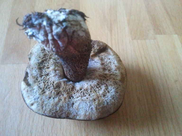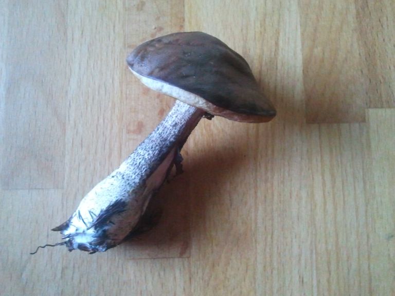 Die Hüte sind alle zwischen 5 und 6,5cm breit. Alle braun. Recht dunkel. Ganz leicht schleimig/schmierig an der Oberfläche. Die Röhren sind gräulich, die Pilze sind aber auch nicht mehr die jüngsten...