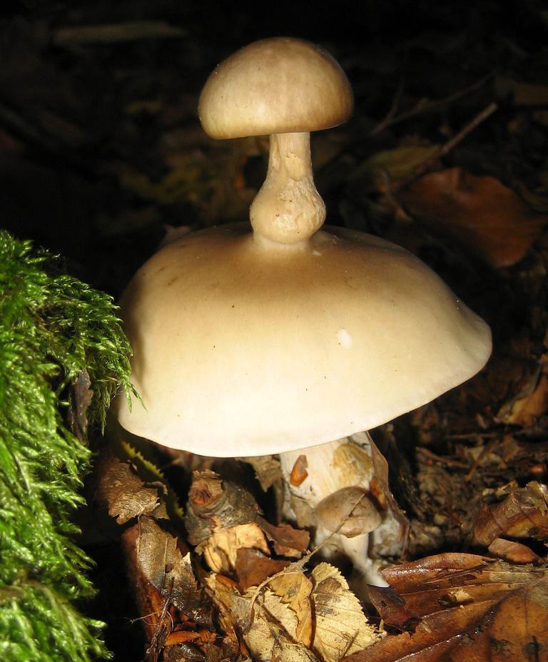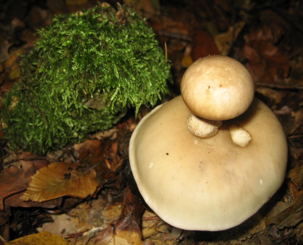 Direkt daneben standen die Nebelkappen, aber ich bin mir nicht sicher ob es sich bei dem Doppeldecker um dieselbe handelt ? Ich hab nicht genau erkennen koennen ob die Lamellen gelb waren, auch habe ich den Pilz nicht beschaedigt oder am Fruchtfleisch gerochen, weil ich in 2 Tagen nochmal schauen moechte, wie er sich entwickelt hat.